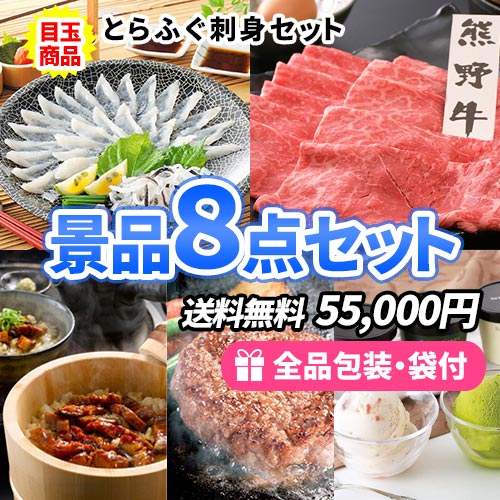 とらふぐ刺身に熊野牛すき焼きの入ったすべてが目録の景品8点セット