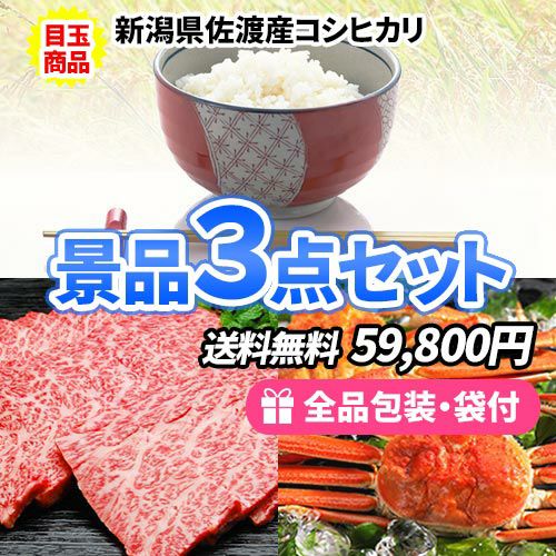 新潟産コシヒカリをメインに人気の松阪牛を含めた景品3点セット