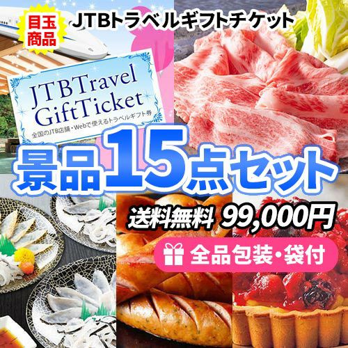 JTB旅行券をメインにもらって嬉しい多人数対応の景品15点セット