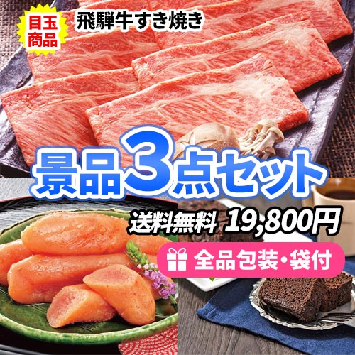飛騨牛すき焼きを目玉にちょっとしたイベントにも使える景品3点セット【商品引換券】【即納商品】【送料無料】