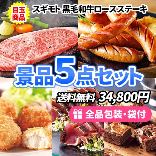 黒毛和牛ステーキが目玉の美味しい景品5点セット【商品引換券】【即納商品】【送料無料】