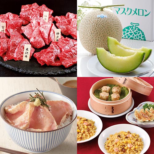 女性に人気のメロン&ローストビーフをメインに便利な食品が詰まった景品10点セット【一部商品引換券】【送料無料】