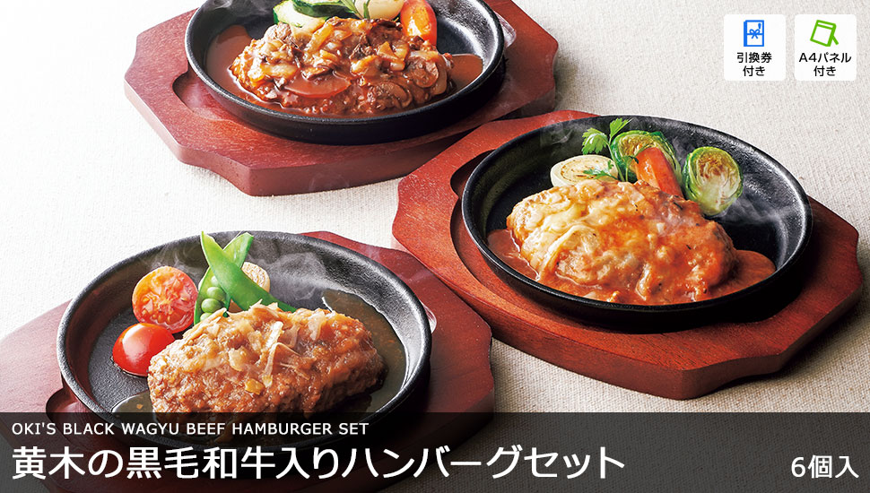 黒毛和牛と国産豚を合挽きにした、お肉の旨みが味わえるハンバーグ。黄木直営レストランのレシピで3種のソースに仕上げました。湯せんでお召しあがりいただけます。