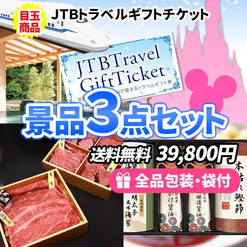 トラベルギフトチケットをメインに国産牛食べ比べが入った景品3点セット