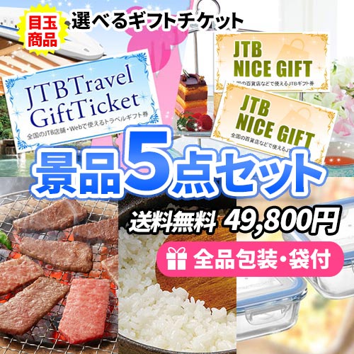 選べるギフトチケットを目玉に美味しい&使える景品5点セット