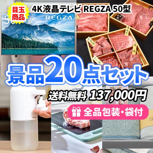 4K液晶テレビをメインに主婦に嬉しい食品や雑貨の入った景品20点セット
