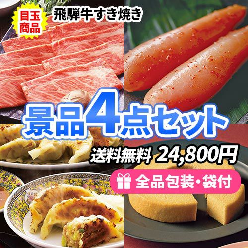 飛騨牛すき焼きをメインにちょっとしたイベントにも使える景品4点セット