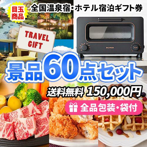 全国温泉宿・ホテル宿泊券に話題のバルミューダトースターが入った景品60点セット【一部商品引換券】【送料無料】