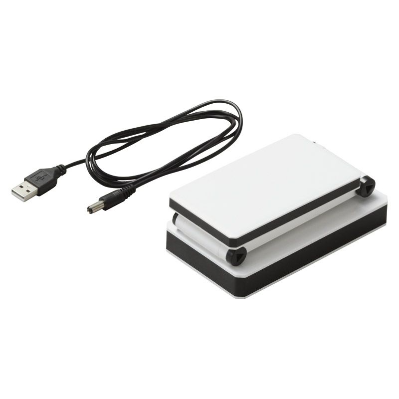 コンパクトに折りたたみ可能なLED電気スタンドです。乾電池とUSB電源いずれでも使用可能なので、外出先でも便利です。(3段階調光機能付)