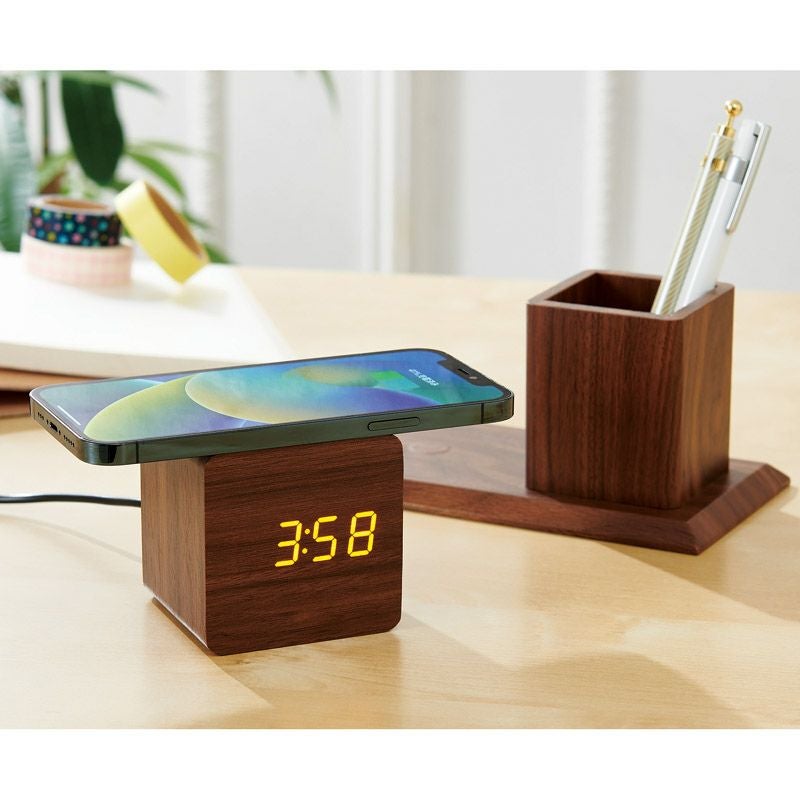 ペンホルダー付ワイヤレス充電クロック