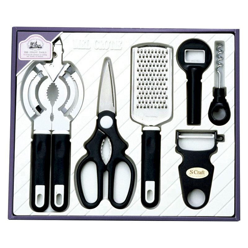 キッチン鋏・皮引き・おろし器・コルク抜き・栓抜き・ジャーオープナー×各1