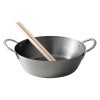 1.6mmの鉄厚板で、高い蓄熱性を実現します。口が広く、揚げる際に出る水分を飛ばすのに適しています。プロ仕様の粉箸付きです。