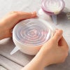 伸びてピタッと保存できる抗菌剤入りのラップです。ピッタリ容器にフィットするので汁物が漏れにくいです。着脱しやすいつまみも付いています。洗って繰り返し使えるので環境にも優しい商品です。