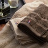 厚みたっぷりでボリューム感のあるホテル仕様で肌触りはとてもやわらかいのに丈夫な質感。環境負荷を少しでも減らすサステナブルな取組みとして、タオルを織る電力は太陽光発電でまかなっています。