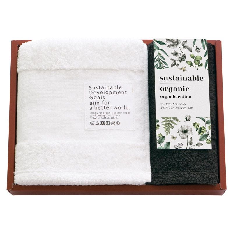 フェイスタオル(約340×850mm)・ハンドタオル(約340×340mm)×各1 ■材質:綿100%(オーガニックコットン100%)