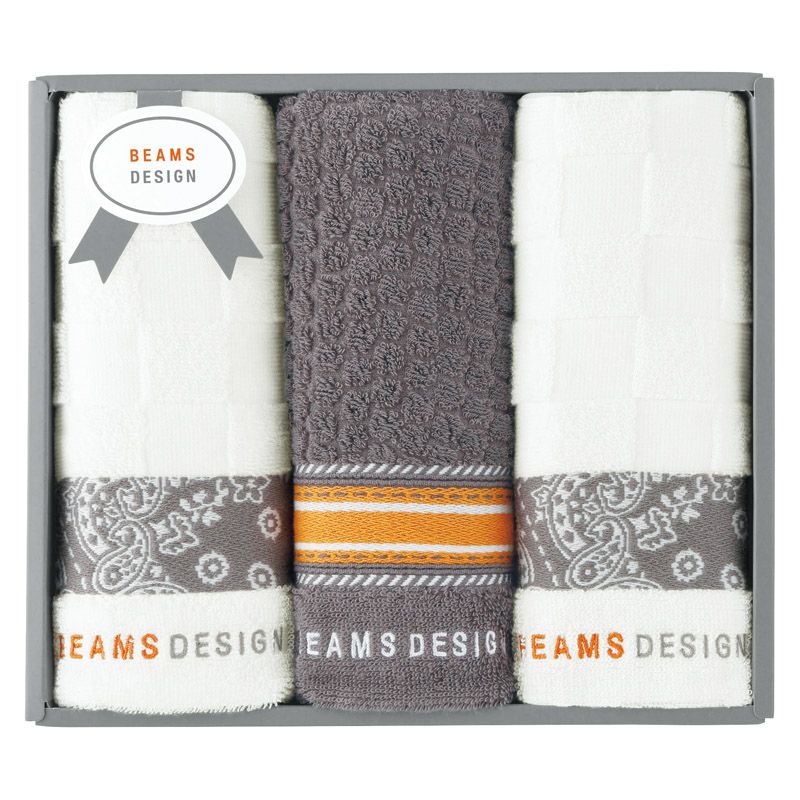 BEAMS DESIGN チェッカーバンダナ フェイスタオル3P(グレー)