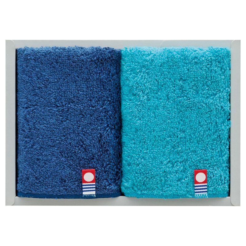 フェルガナコットン 今治カラータオルハンカチ2P(ネイビー・ブルー)