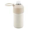 真空二重ステンレスで飲みごろキープ。500~600mlのペットボトルサイズに対応します。持ちやすい大きな輪っかのハンドル付。