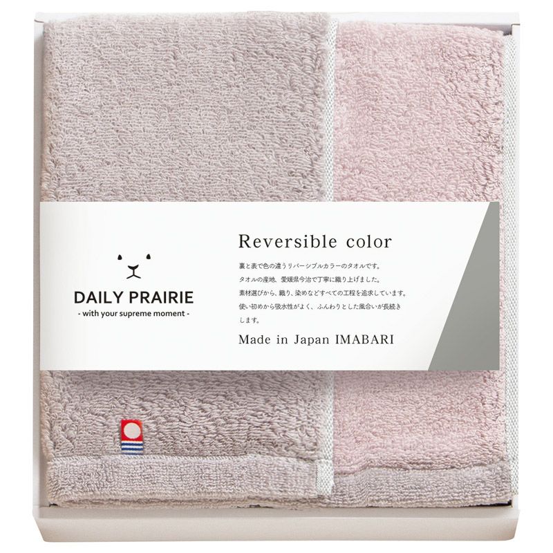 DAILYPRAIRIE リバーシブル ハーフバスタオル(グレージュ/ピンク)