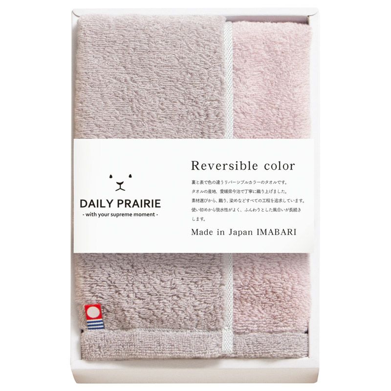 DAILYPRAIRIE リバーシブル フェイスタオル(グレージュ/ピンク)