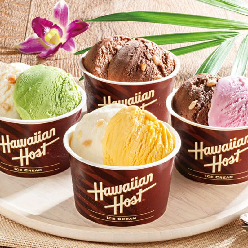 「ハワイアンホースト」の代名詞であるマカダミアナッツのクラッシュを練りこんだミルクチョコアイスと、ミルクとホワイト2種のマカダミアチョコアイスに、相性抜群の3つのフレーバーを組み合わせ、見た目も味も楽しいアイスに仕上げました。