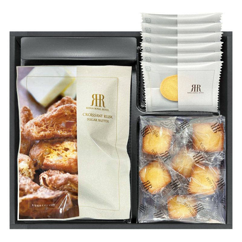 クロワッサンラスク(シュガーバター風味)・プチフィナンシェ(プレーン)(6P)×各1、クッキー(プレーンバニラ・チョコチップ)×各3