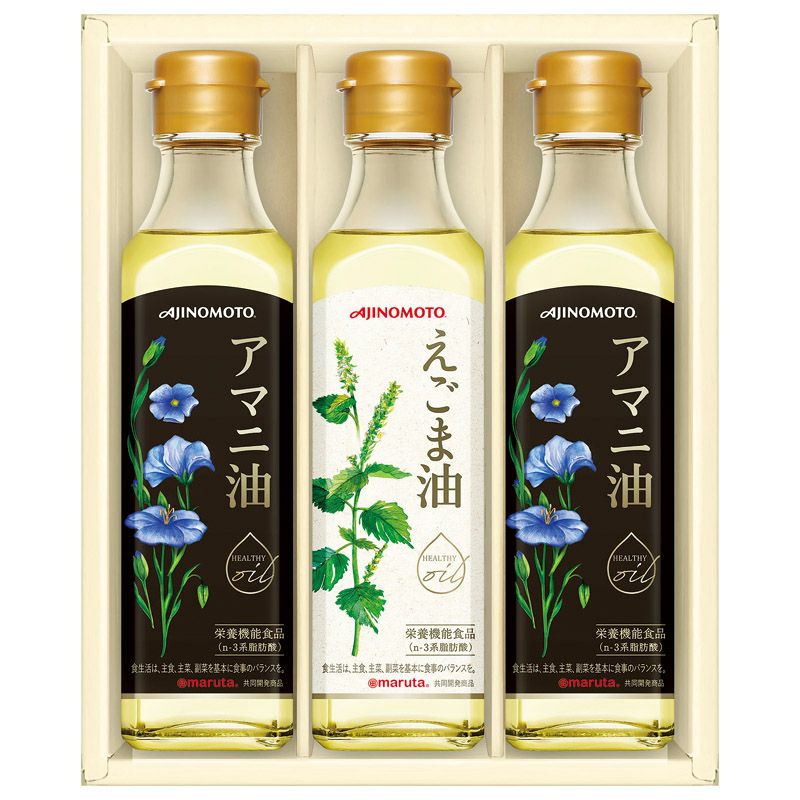 さまざまな有用性を持つ“オメガ3系脂肪酸”を豊富に含む、えごま油とアマニ油を組み合わせた健康オイルギフトです。健康を気遣う方にピッタリな話題の贈り物です。