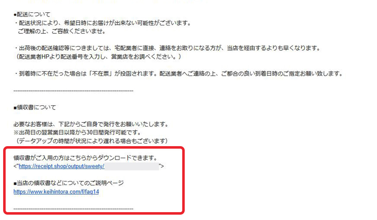 クレジットカード・Amazon Pay・銀行振込の場合は、発送メール内のURLからダウンロードできます。代金引換・NP後払いは、各決済で受け取る受領書をご利用ください。