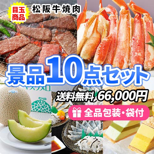 松阪牛焼肉を目玉にバラエティ豊かな食品・スイーツ景品10点セット【商品引換券】【即納商品】【送料無料】