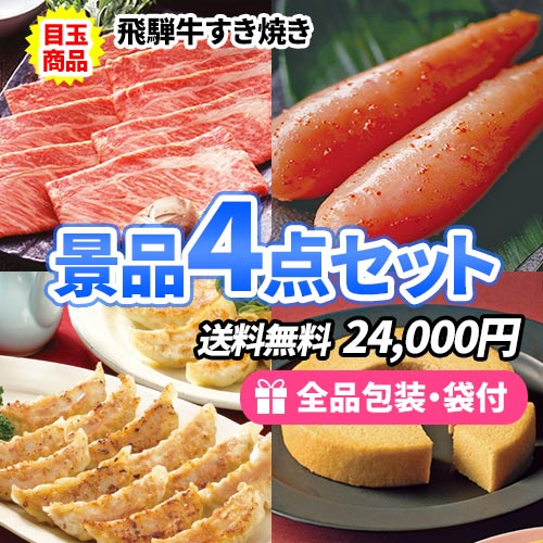 飛騨牛すき焼きをメインにちょっとしたイベントにも使える景品4点セット【商品引換券】【即納商品】【送料無料】