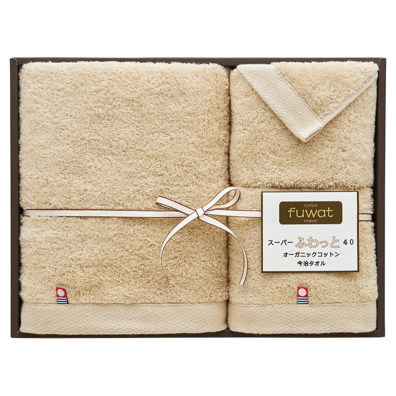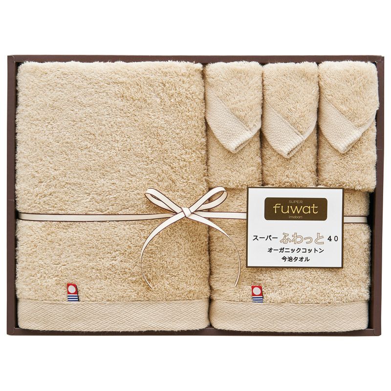 スーパーふわっと40 オーガニックコットン今治タオルセット (ベージュ)